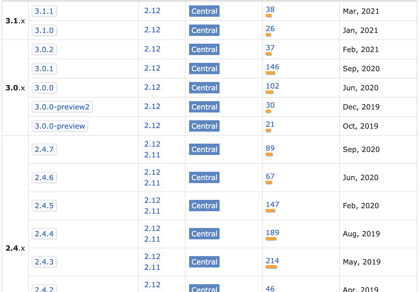 - Spark 3.x 主要支持 Scala 2.12、2.13(但部分早期 3.x 版本对 2.13 支持不完善);