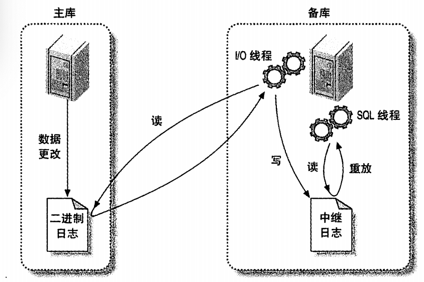 Master 的 Binlog Dump Thread 读取 binlog 事件,发送给 Slave 的 I/O 线程,后者将事件写入中继日志(relay log)。 - Slave 应用变更: