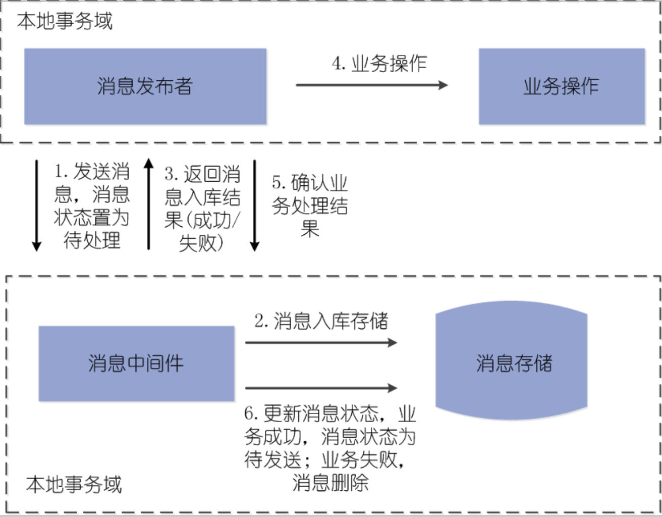 - 确认消息状态:业务执行完成后,向中间件发送 “业务结果”: