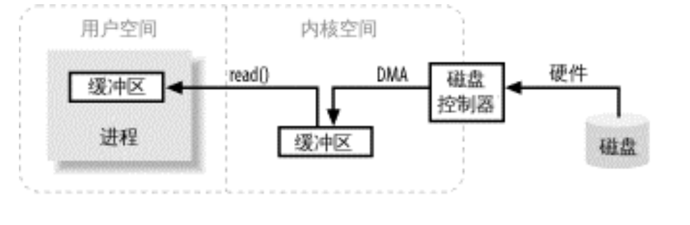 系统调用,请求从磁盘读取数据。此时进程进入阻塞状态(让出 CPU),等待数据就绪。 - 步骤 2:DMA 控制器将数据从磁盘传输到内核缓冲区