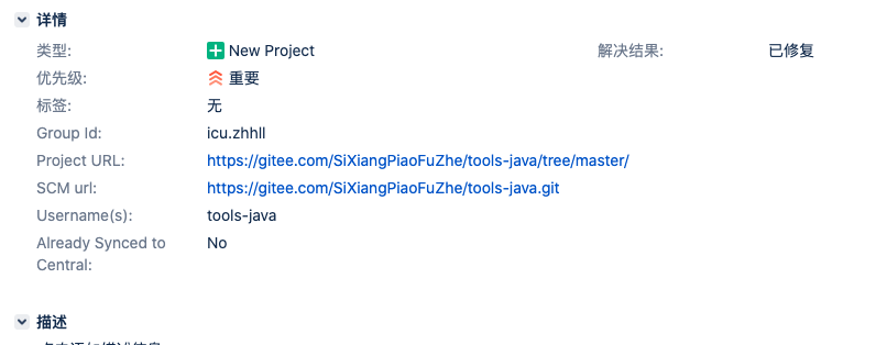 gitee.com/yourname/tools-java,则 GroupId 为io.gitee.yourname)。