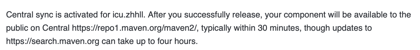 同步时间:通常 10-30 分钟可在 Sonatype 仓库 查到。