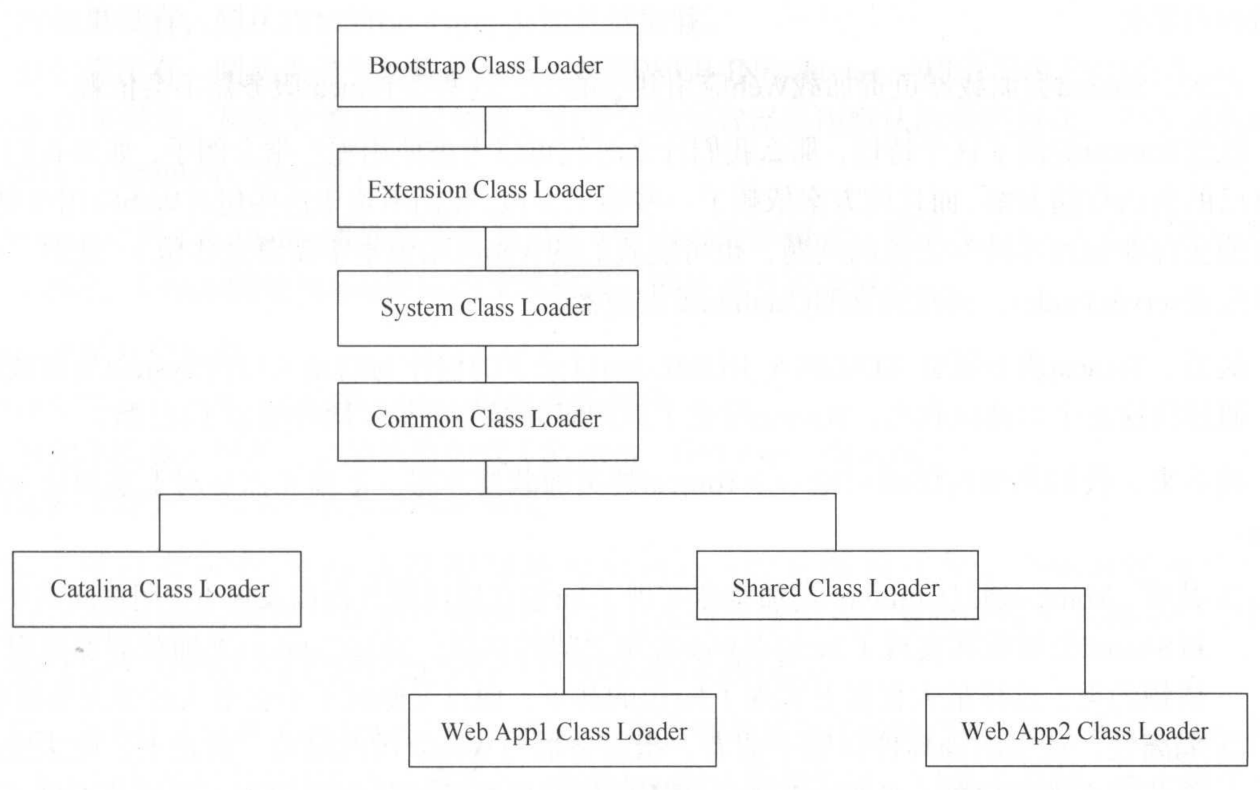 Tomcat 打破了 Java 原生的双亲委派模型,设计了多层次的类加载器,实现不同范围类的隔离与共享。其核心类加载器结构如下(从顶层到应用层):